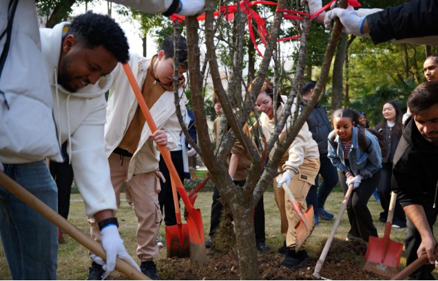 本网讯(通讯员 瞿菲菲)3月12日下午,在第48个植树节来临之际,学校后勤保障处联合国际学院在武昌校区叠翠湖开展“植树护绿同行动,国际携手共成长”来华留学生植树节劳动教育活动。国际学院直属党支部书记桂展鹏、国际学院副院长杨晨晨以及国际学院师生与后勤保障处工作人员三十余人共同参与,为春日校园播撒新绿。活动现场碧草蓝天,留学生们跨国组队,大家齐心协力,挥锹培土、提水浇灌,在园艺工作人员的指导下分工协作、配合默契,...
